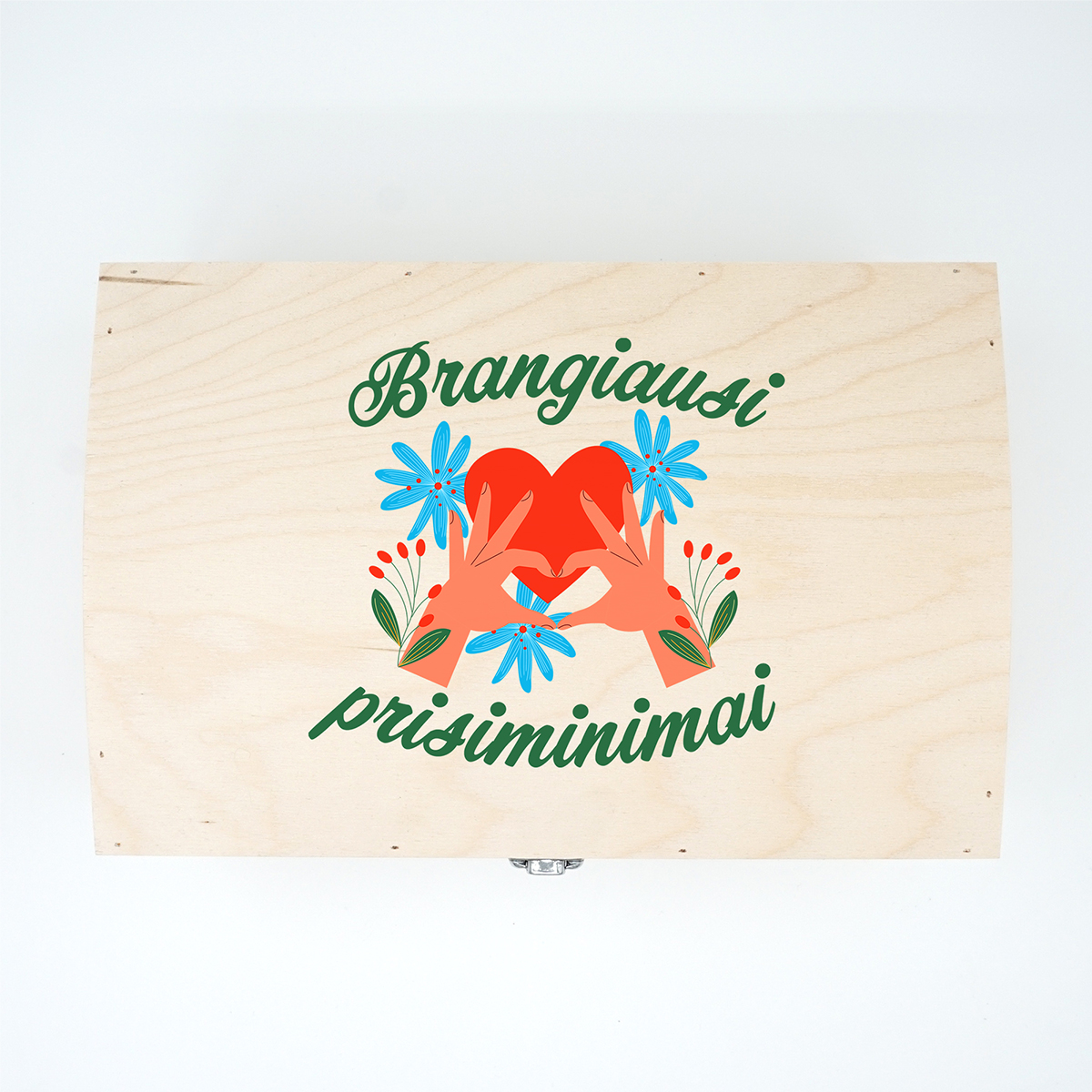 Dėžutė gali būti dovanojama gimtadienio ar krikštynų proga. Į ją sudėti galėsite atminimo dovanėles, krikštynų atributiką, nuotraukas ar žaislus.