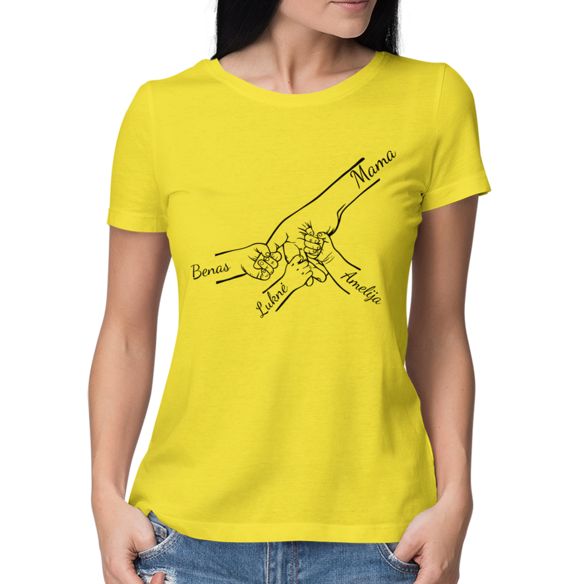 Moteriški marškinėliai "Mama ir vaikai" su pasirinktais vaikų vardais