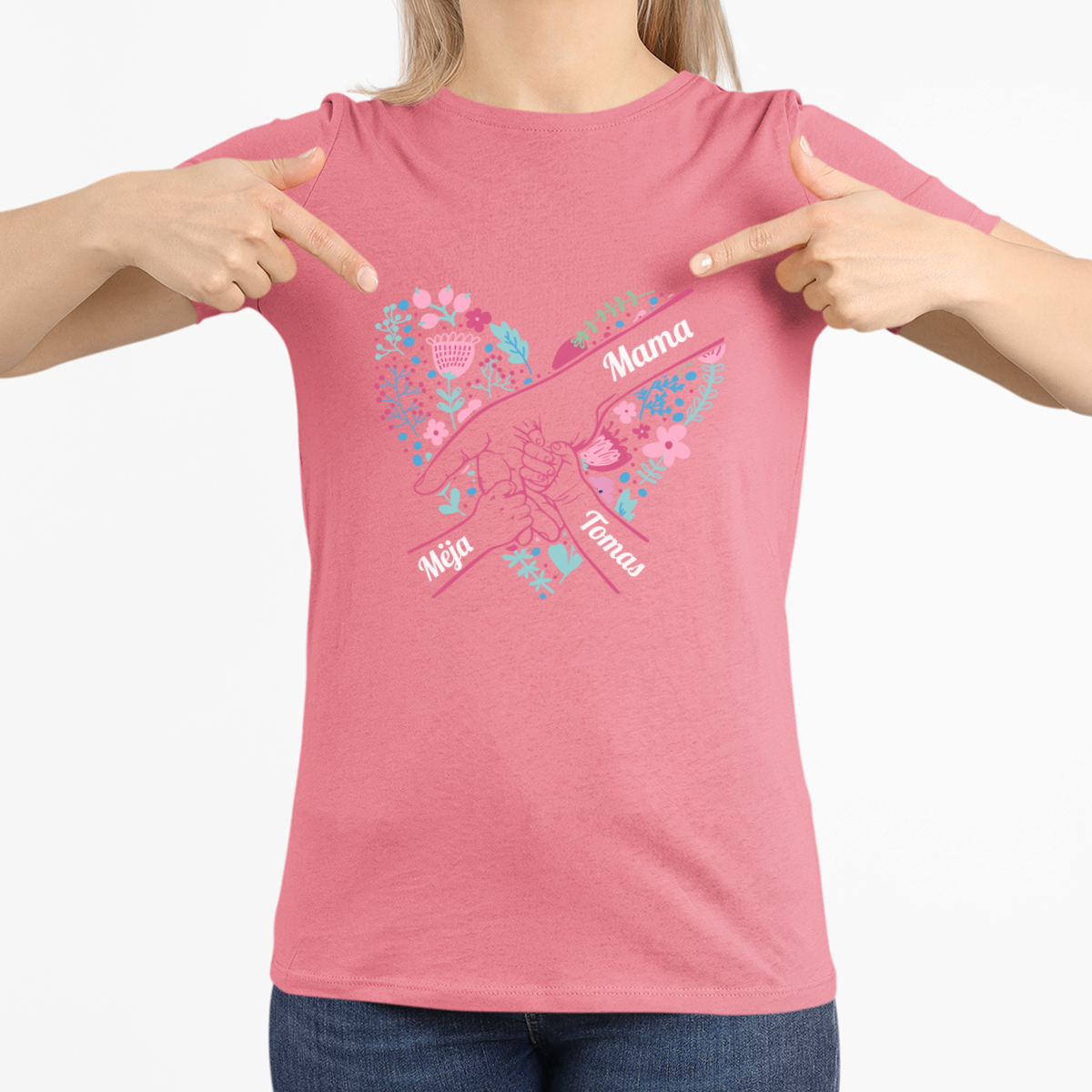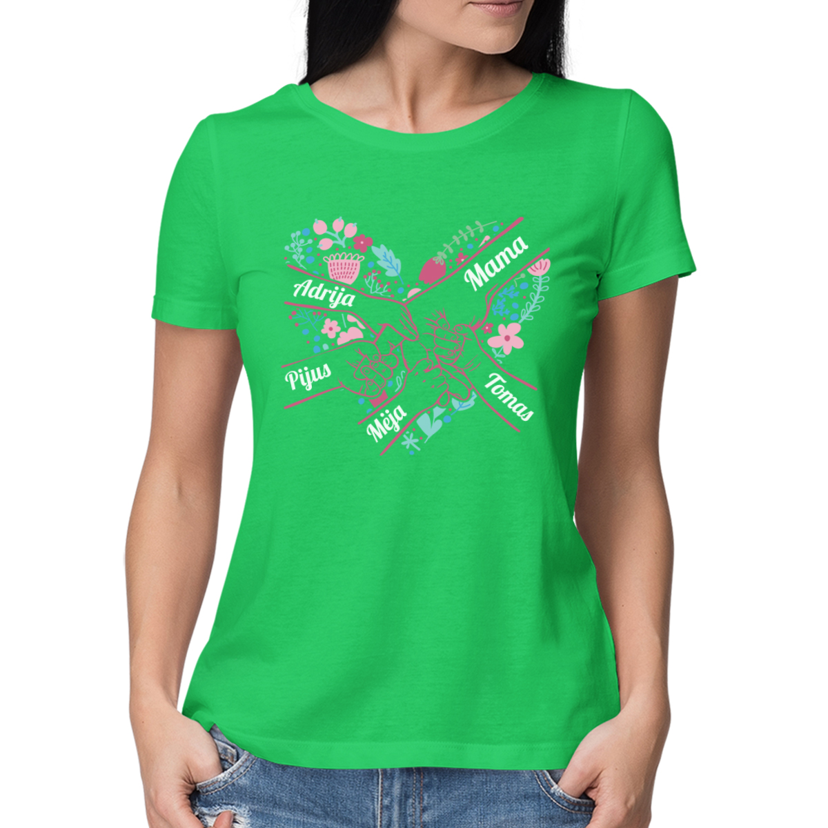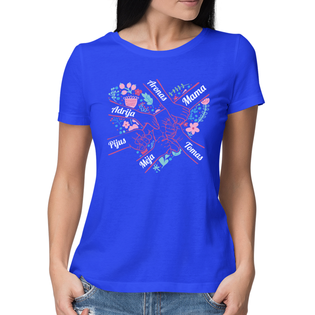 Moteriški marškinėliai "Mamos širdis" su pasirinktais vaikų vardais