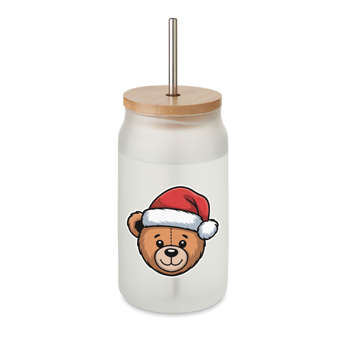 Stiklainis gėrimams su metaliniu šiaudeliu "Teddy bear", 400ml